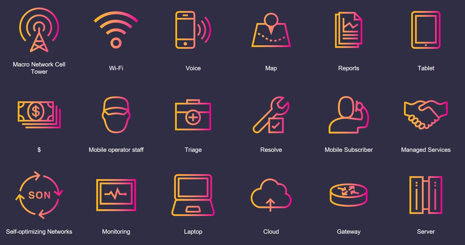 Working closely with Amdocs, Cogent created a kitbag of icons relevant to the mobile networks technological space for use in PowerPoint presentations, brochures and website.